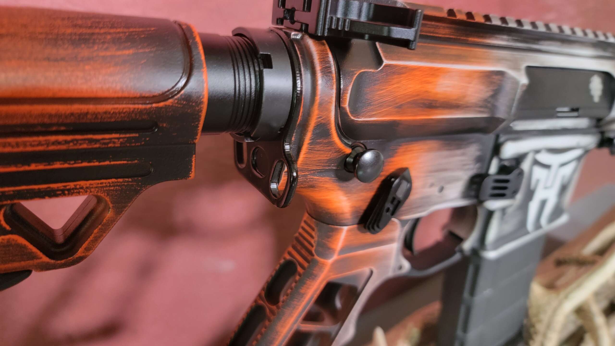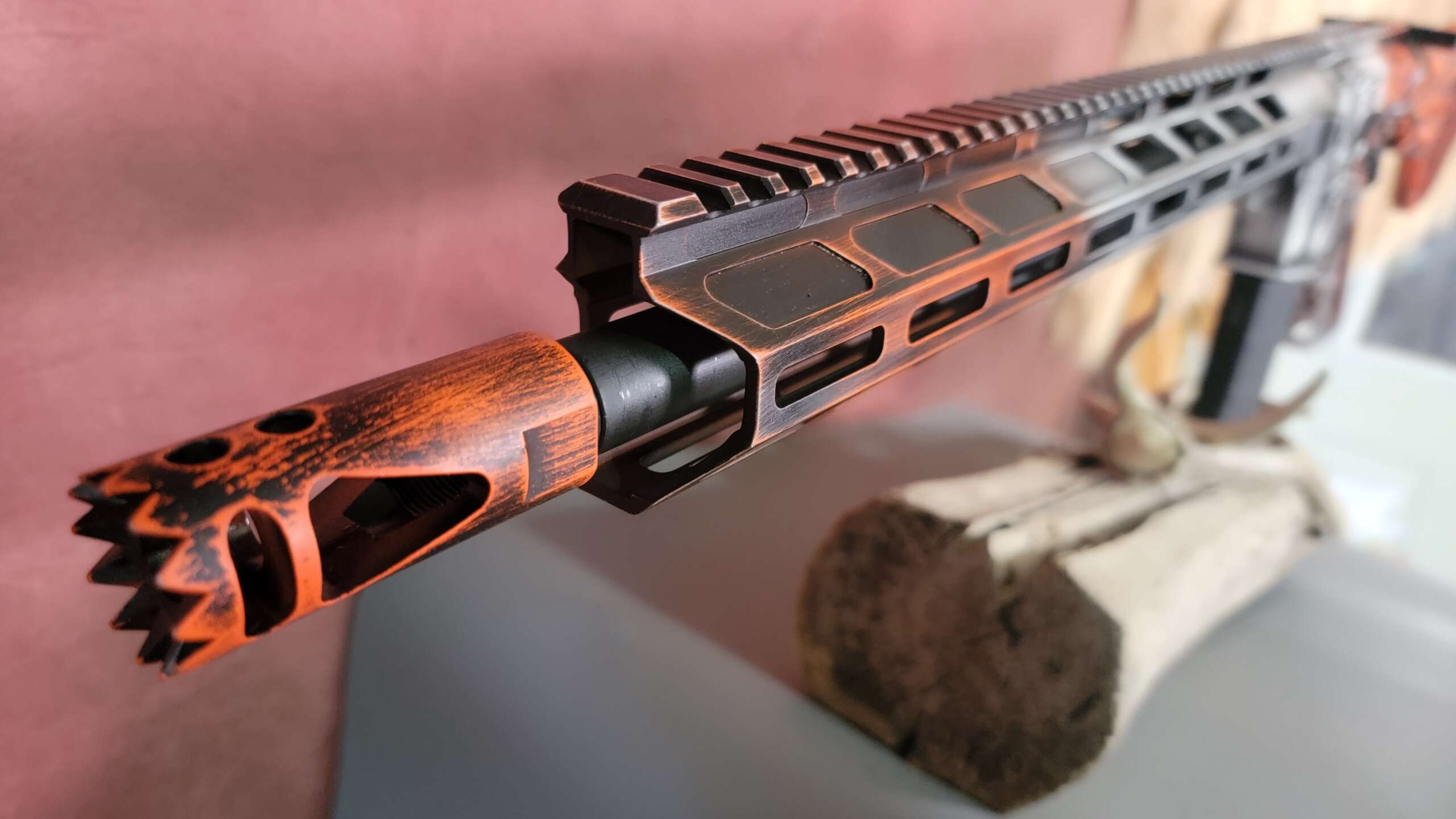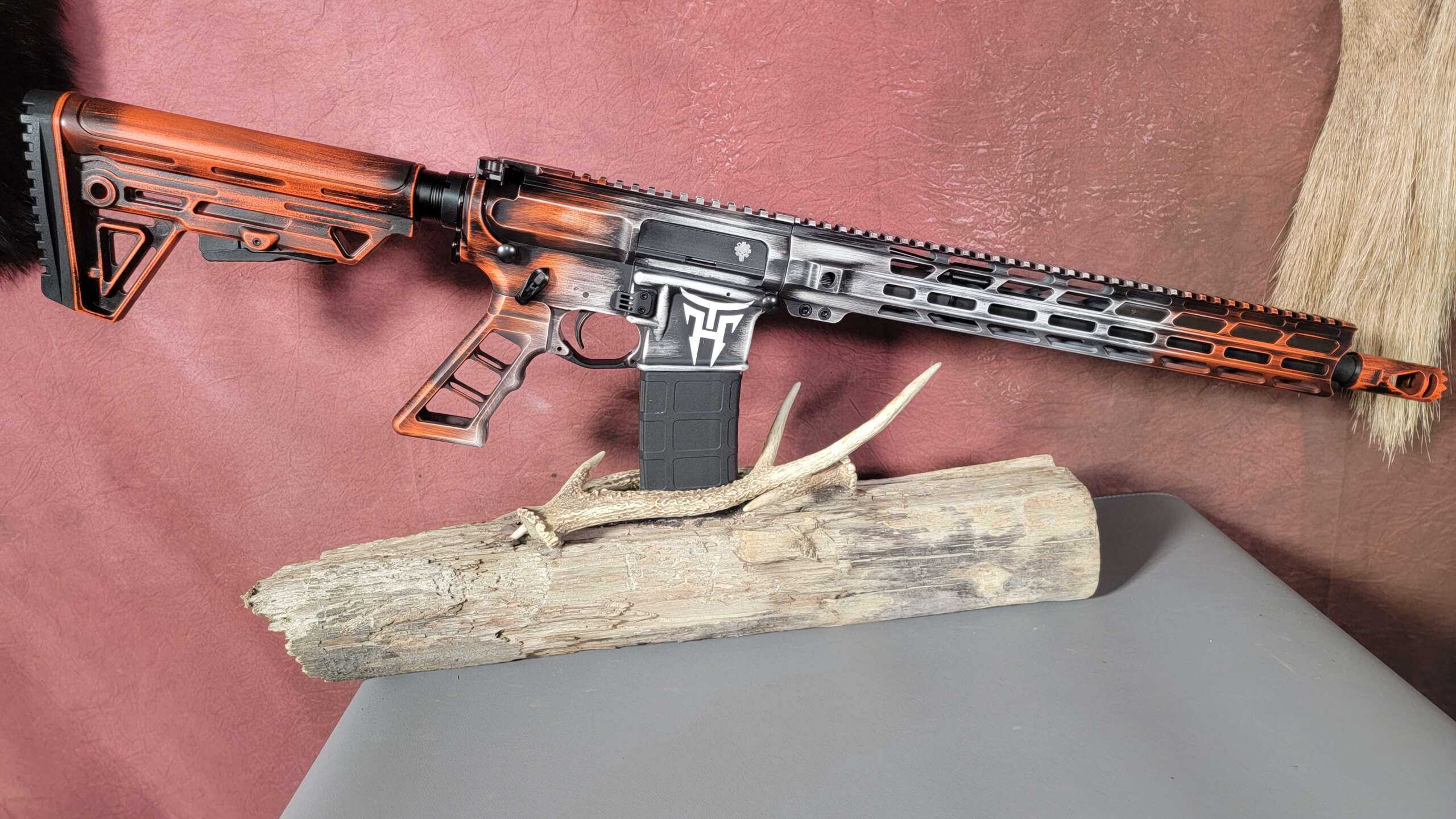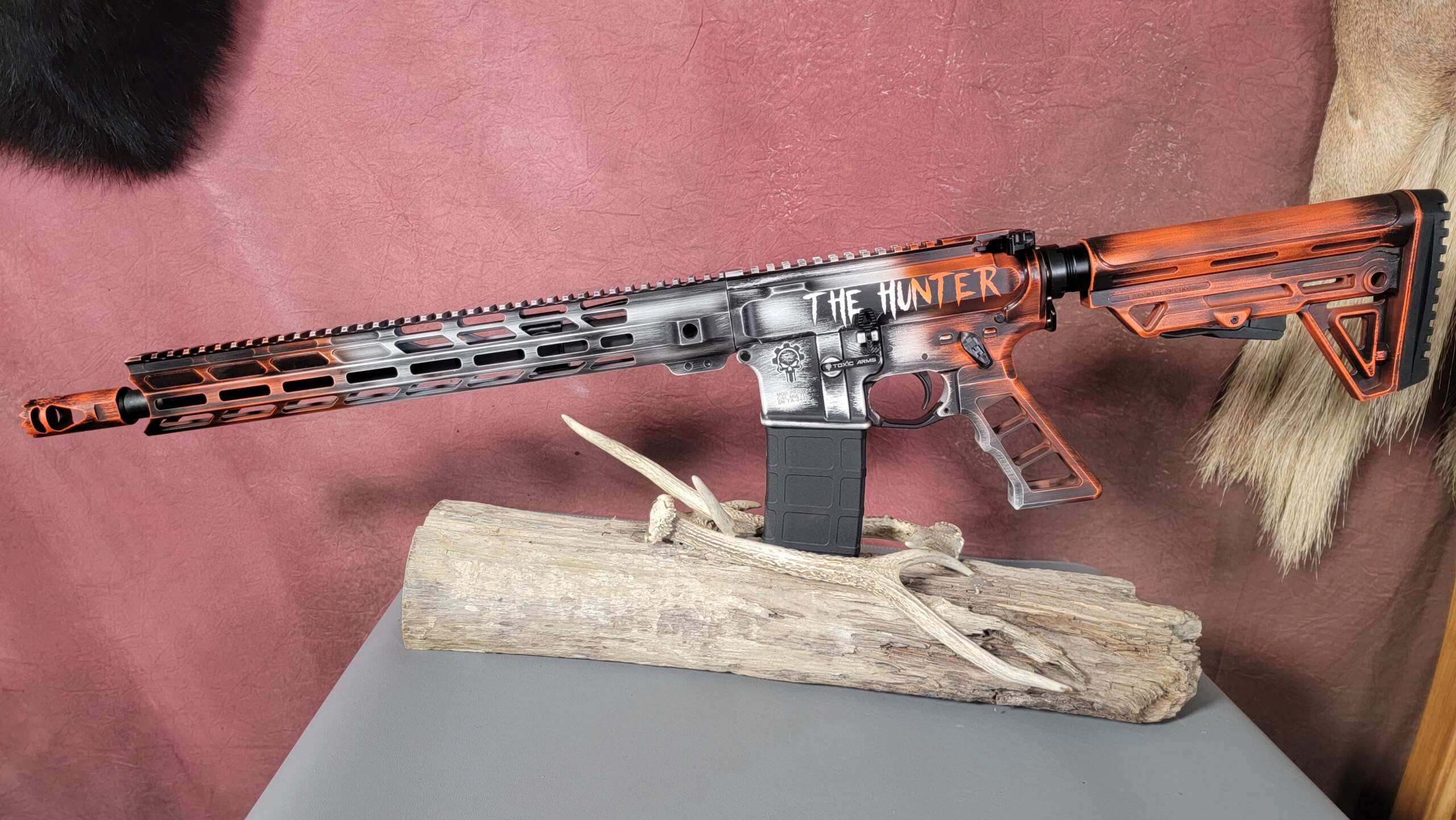 This gun takes 5 – 14 days to complete if we don’t have one in stock. Every one is custom made by one of our AR-tist, so no 2 are exactly like as these are not simply “dipped”, they are done by hand and Cerakoted.